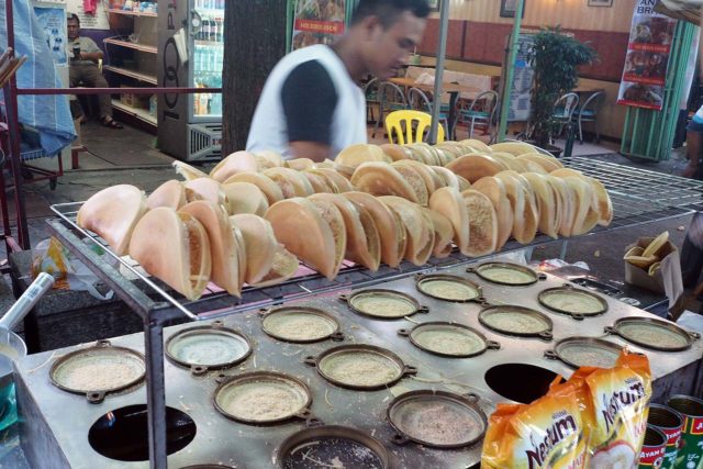 ドリアンの季節になると、ドリアン屋台が道の両側にズラッと並びます。ココナッツ屋さんも。