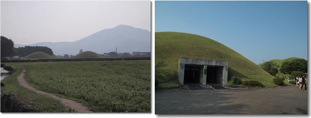 慶州の町は、周りを低い山々がたなびいていて、のどかな感じで