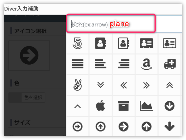 名前がわかれば、Diver入力補助のアイコン検索で探します。