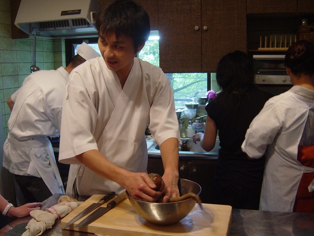 生タコの処理の仕方や、鱧の骨切りを教えてもらったような。