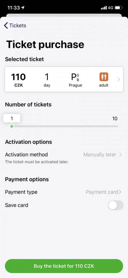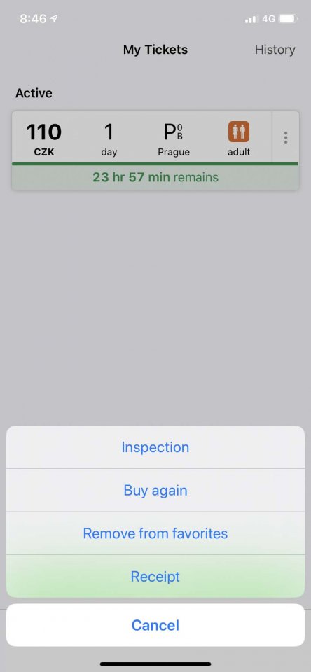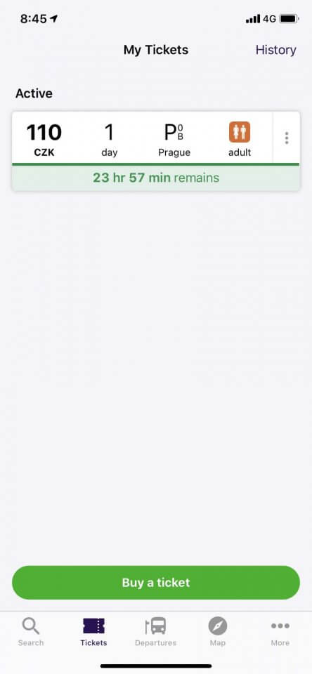 プラハの交通アプリ「PID Lítačka」で購入したチケットを使用するときは、アプリの「My tickets」を開け、「Activate」をタップしてチケットの有効化をします。