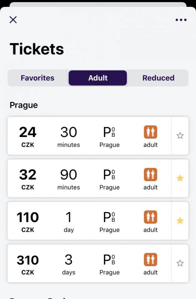 プラハの公共交通機関の料金は、距離ではなく時間によって決まります。